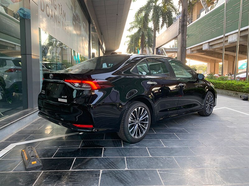 Tiến tới phần đuôi xe, Toyota Corolla Altis đã tinh chỉnh cụm đèn và cản sau theo dạng thiết kế nổi khối, mang đến cho xe sự bề thế. Cụm đèn hậu hình chữ L sử dụng bóng LED kết hợp với đường chỉ mạ crom nối liền hai bóng.